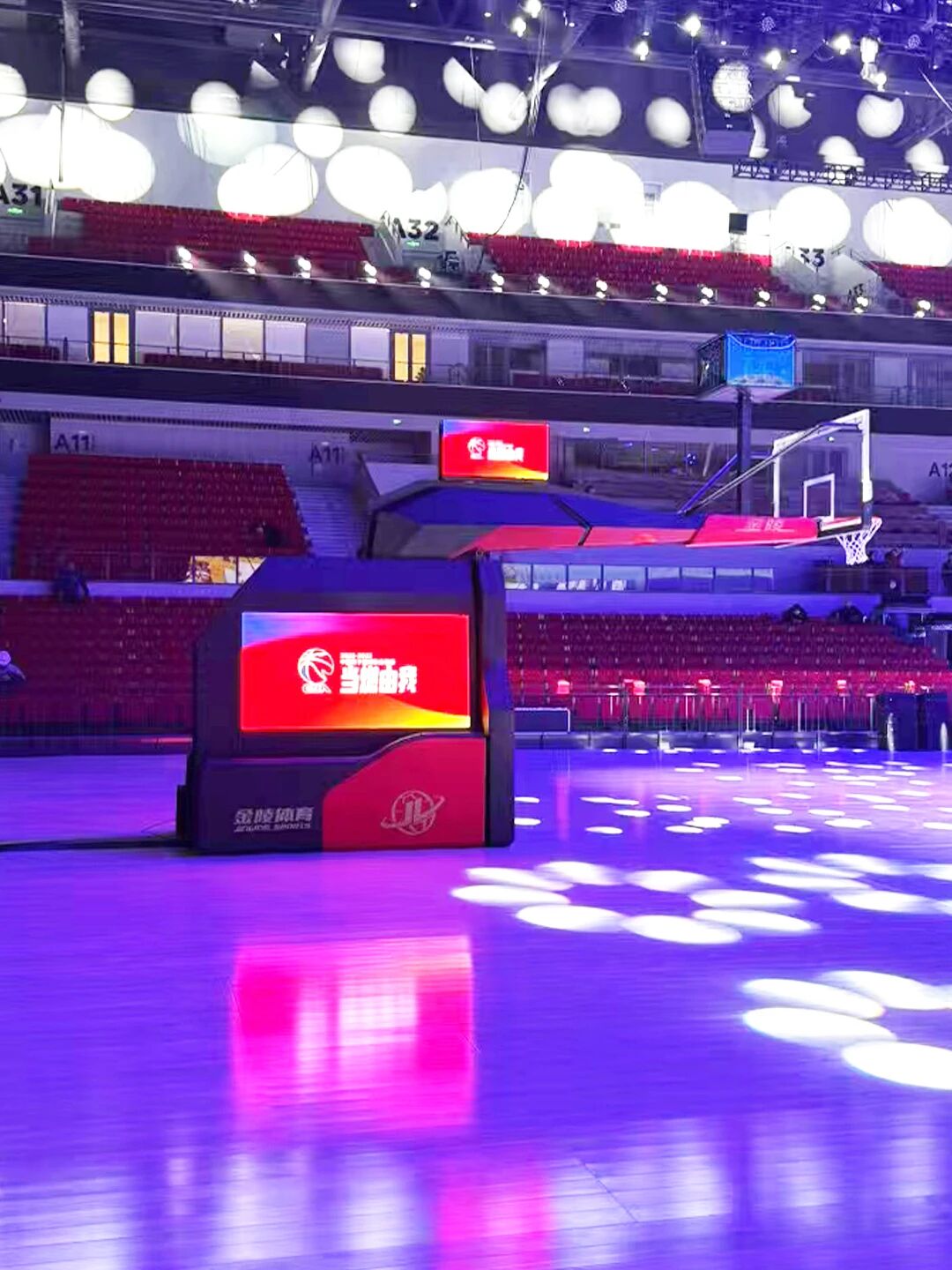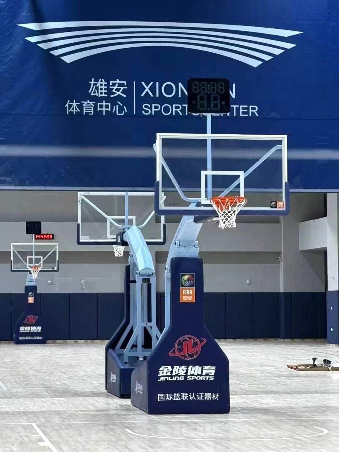 金陵體育作為CBA官方供應商為雄安打造地標性智能建筑提供了硬件支撐,本次入駐雄安體育中心的"CBA之星"和“亞運之星”系列智能籃球架集成了多種技術并通過了FIBA(國際籃聯)的產品認證,全新"CBA之星"擁有HMS(液壓多向傳動自動控制系統),可一鍵行走,實現走輪伸縮、自動穩定平衡升降和坡道行走功能,還配置了高亮抗模糊籃板和Utra Motion 270°全向翻轉彈性籃圈,可緩沖來自270度多角度的外力。而“亞運之星”則采用微電腦控制系統,運用液壓、彈性、電子等新技術完成籃球架底座的升降、走輪前進后退和籃球架定位等動作以實現球架的收縮、升降以及籃板垂直平衡和籃圈高度調節的功能。
