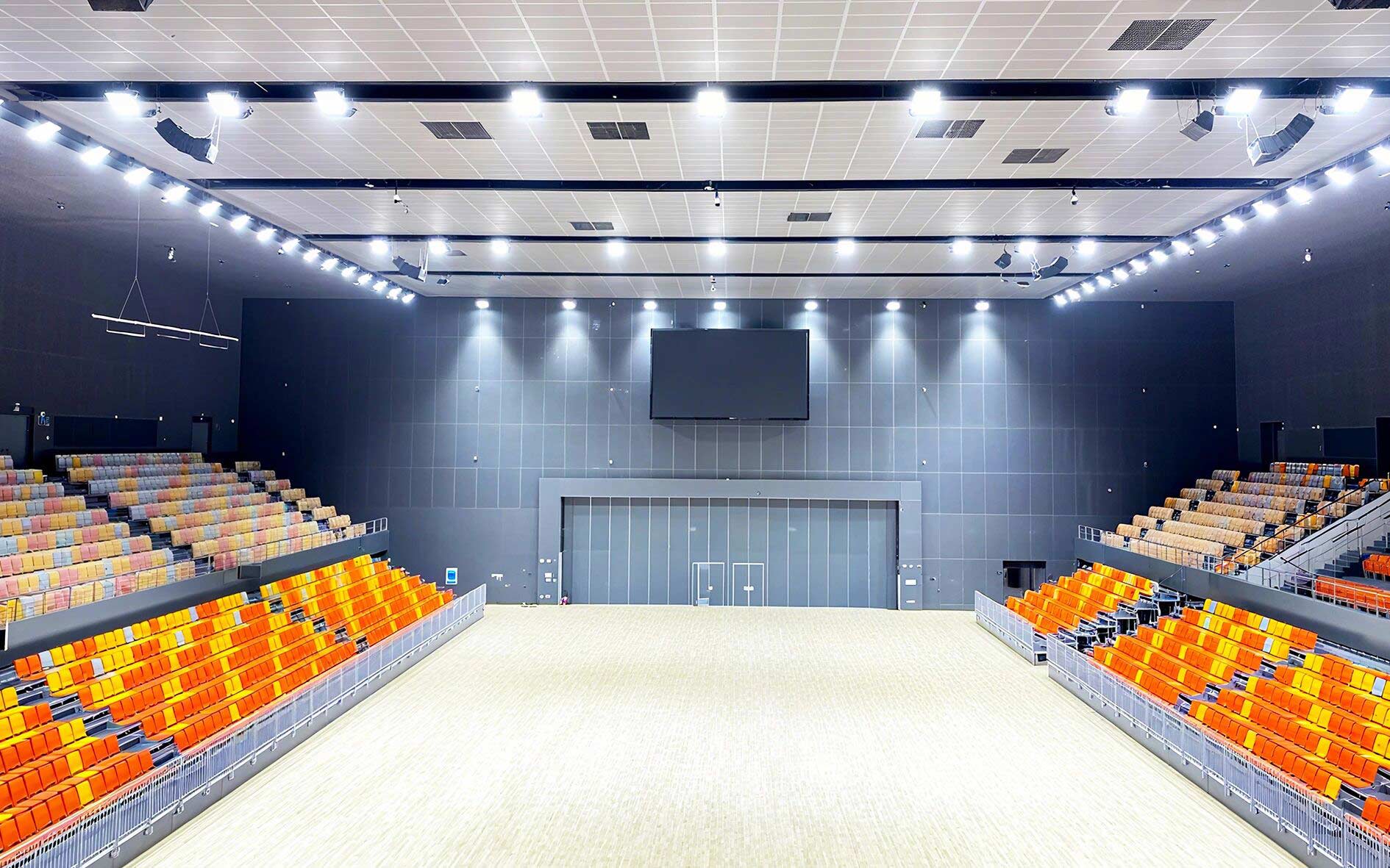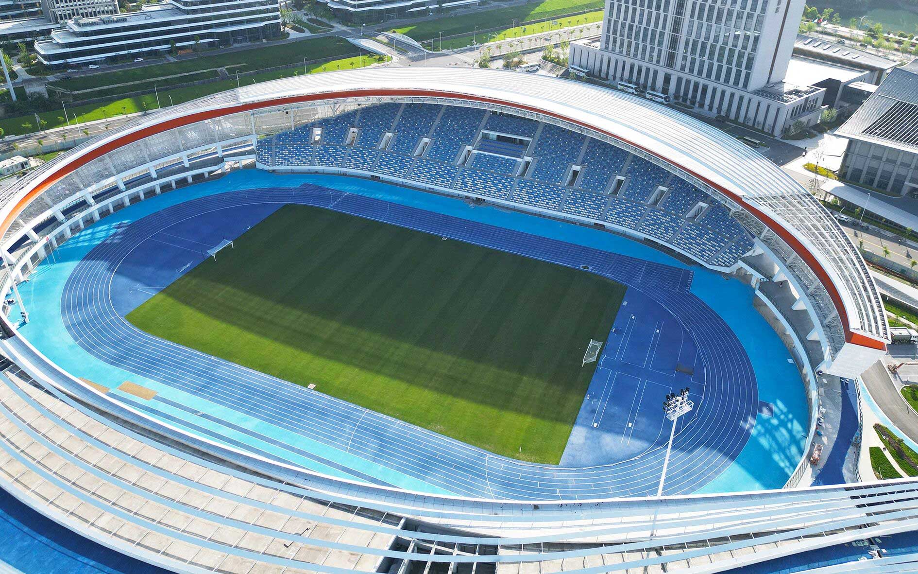 作為項目核心建設力量金陵體育承接了其中眾多關鍵的體育工藝內容,覆蓋所有室內場館、室外球場及體育場的全流程體育工藝工程。從場地擴聲和照明系統、LED大屏,到體育設施系統、各類體育器材、看臺座椅,再到運動草坪、跑道鋪設、泳池水處理、恒溫除濕系統等,每一個細節都傾注了專業匠心。